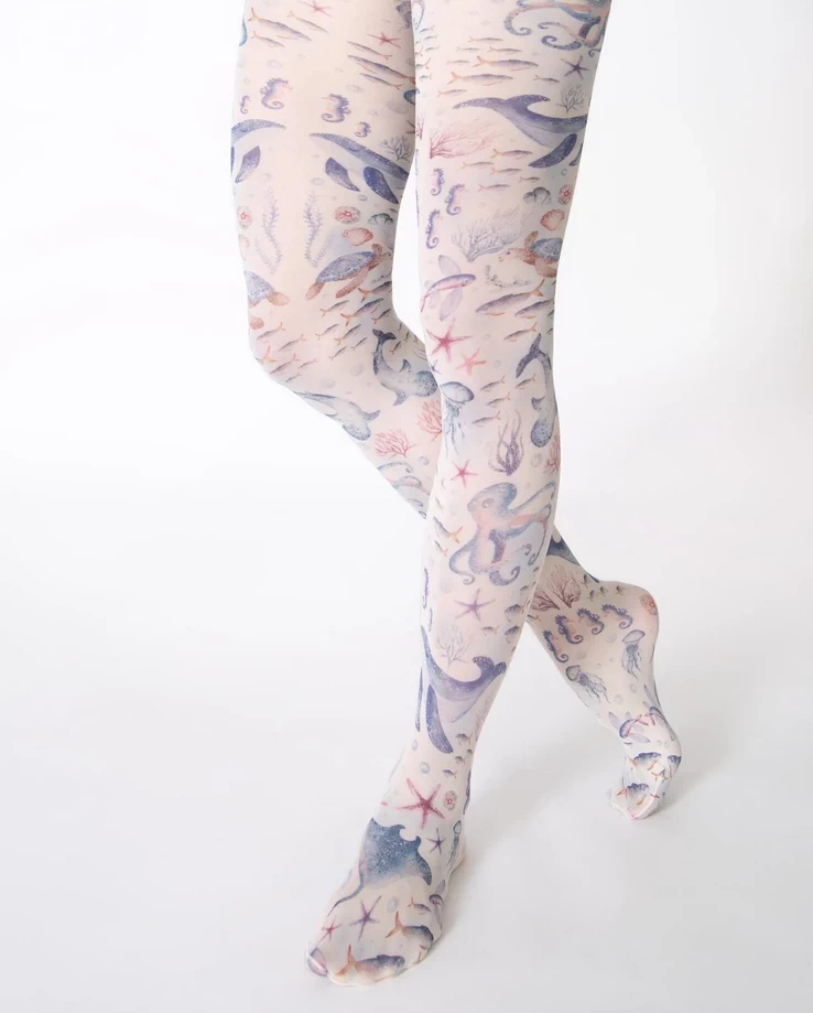 Per chi ama il mare ma non ha voglia di bagnarsi: questi collant sono un tuffo nell’oceano, senza bagnasciuga.