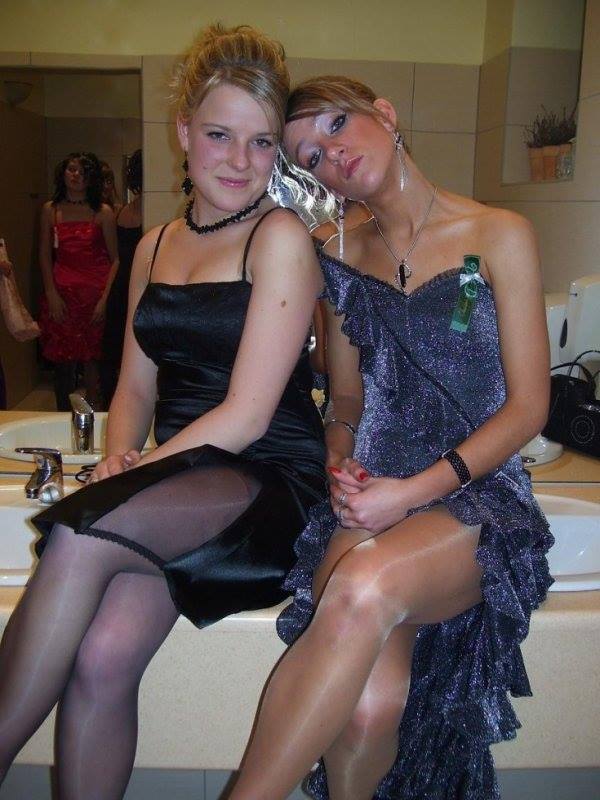 Due mesi fa abbiamo pubblicato la foto di una ragazza piuttosto annoiata a una festa. In questo caso il party sembra riuscito meglio: le due ragazze si sono fatte fotografare in bagno ma non hanno l’aria annoiata, anzi, il sorriso sembra soddisfatto e le belle gambe in collant esibite mentre siedono sul lavandino lasciano immaginare il proseguire della serata.